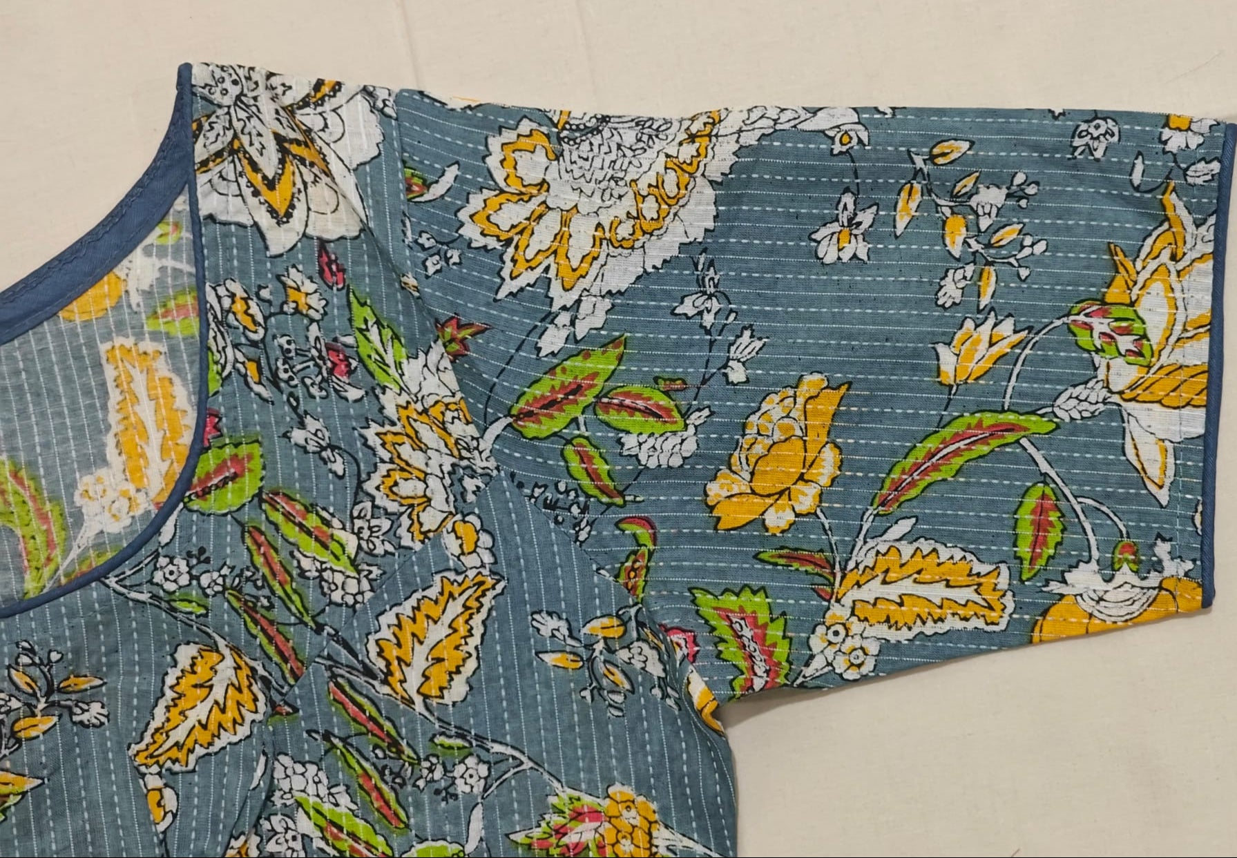 Upgrade your ethnic wardrobe with this stylish ready-made cotton blouse designed with a alterable fit for ultimate comfort and versatility. Crafted from premium South hand block cotton, this blouse ensures breathability, durability, and effortless elegance.