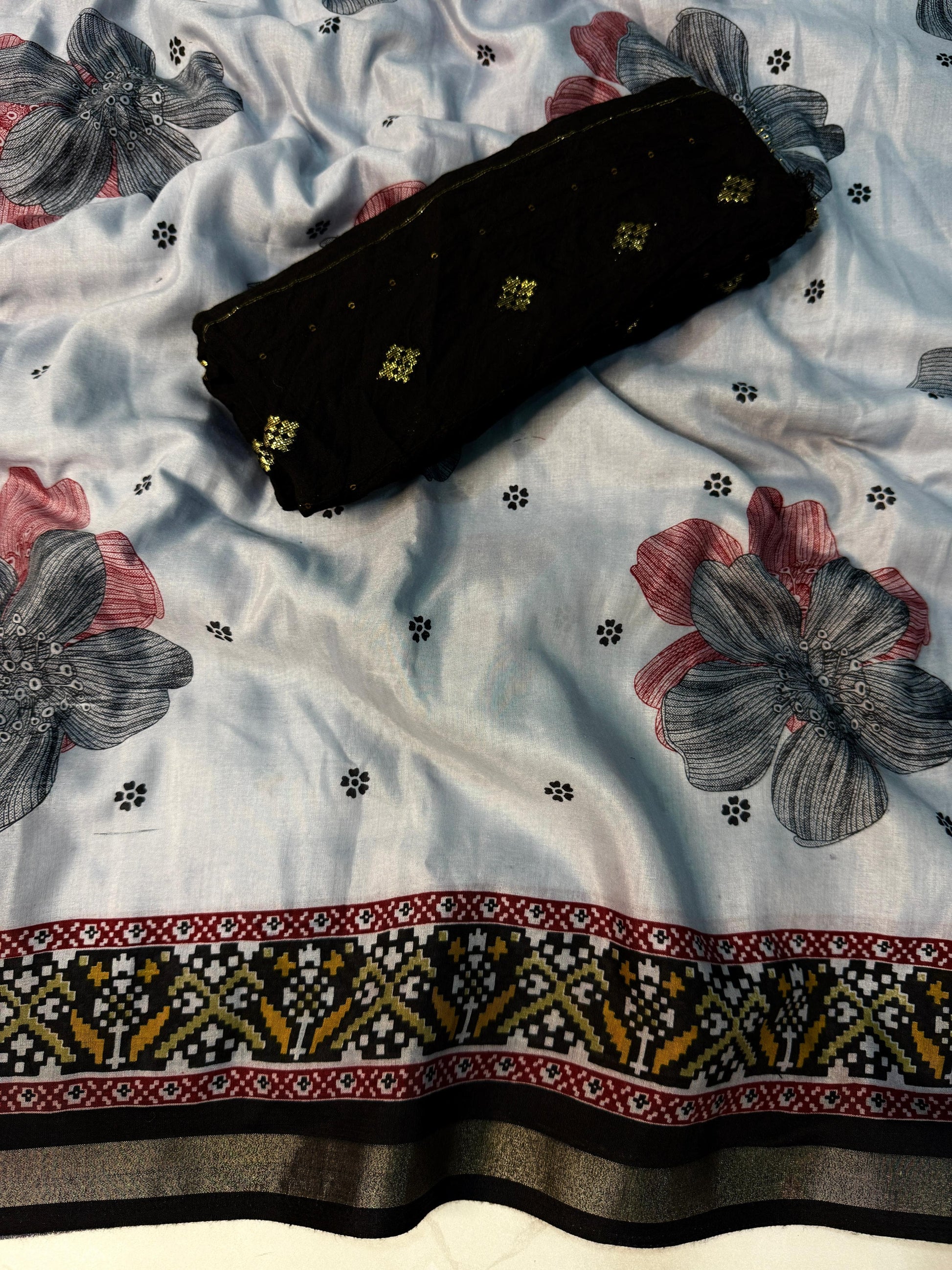 Super Mul Mul Cotton Bandhej Flower Saree - Black